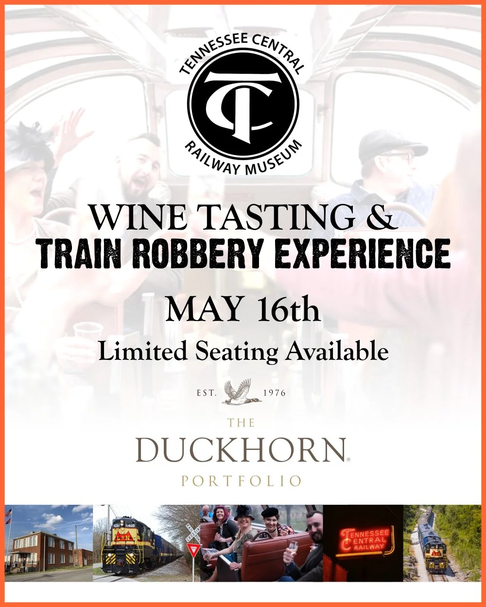 As the train travels through Middle Tennessee, guests will sample eight Duckhorn wines, hand-selected by Duckhorn’s own team. A Duckhorn representative will guide guests through each pour, sharing insight into the flavor profiles and craftsmanship behind every wine—though guests should remain alert, as bandits may be lurking around every bend.